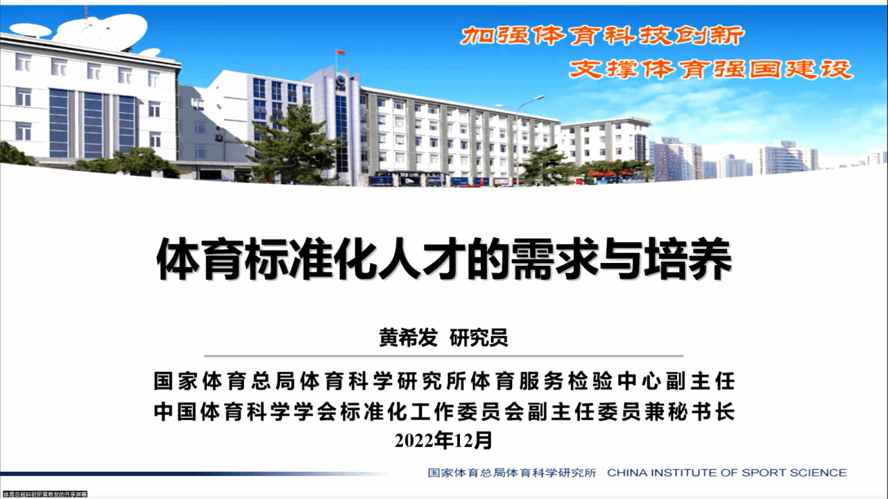 国家体育总局体育科学研究所研究员黄希发作“体育标准化人才的需求与培养”主题讲座,从体育标准化的需求(实践需求和能力要求)和培养(人才培养和如何培养)两个方面介绍体育标准化人才需求现状和培养方案。