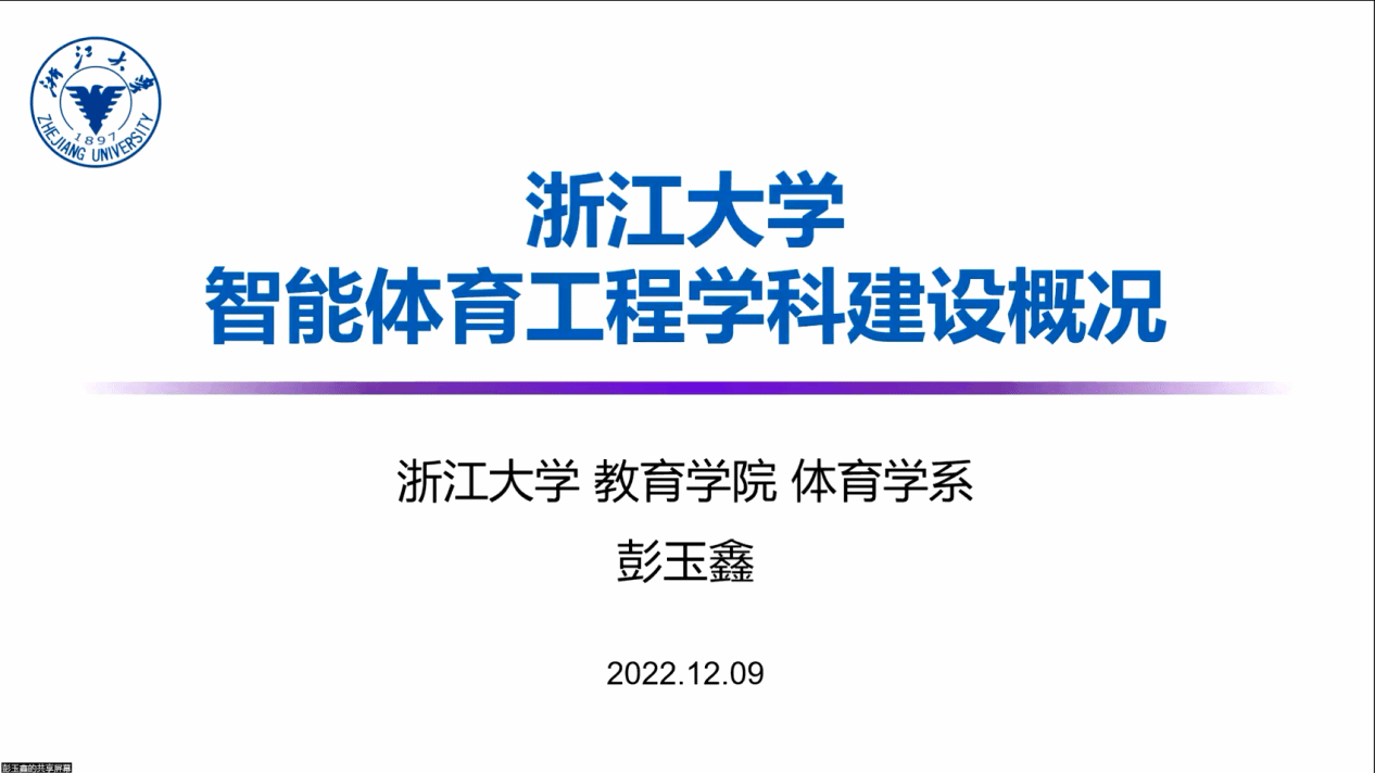 浙江大学彭玉鑫研究员作“浙江大学智能体育工程学科建设概况”主题讲座,分享浙江大学体育智能体育工程学学科申报建设过程中的经验体会以及正在申请中的智能体育工程实验室情况。